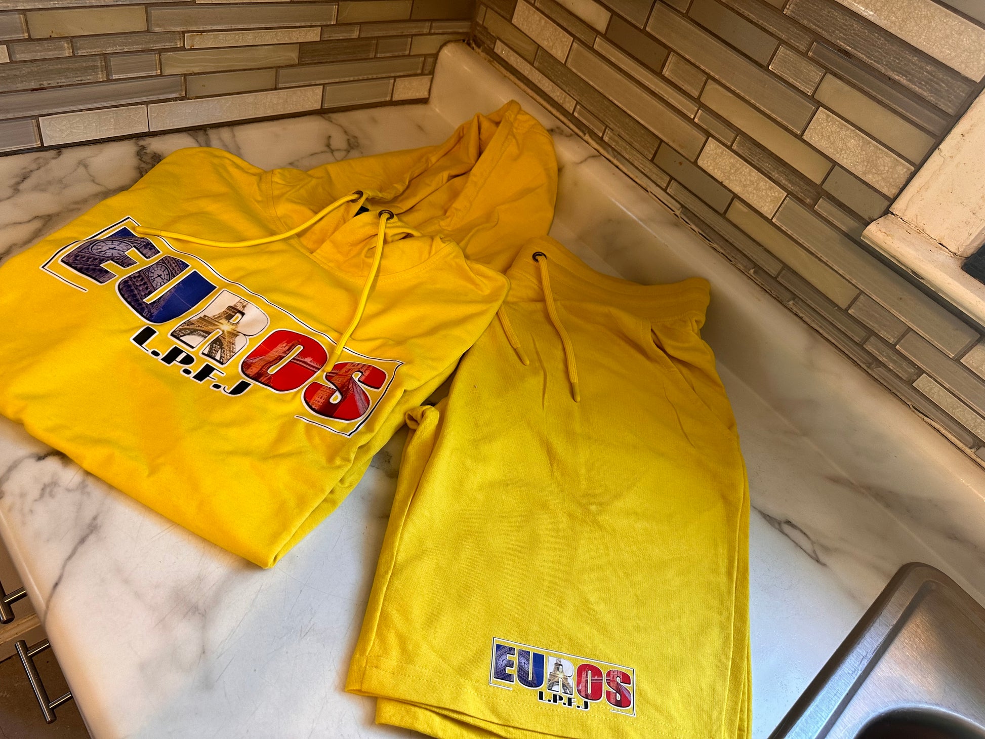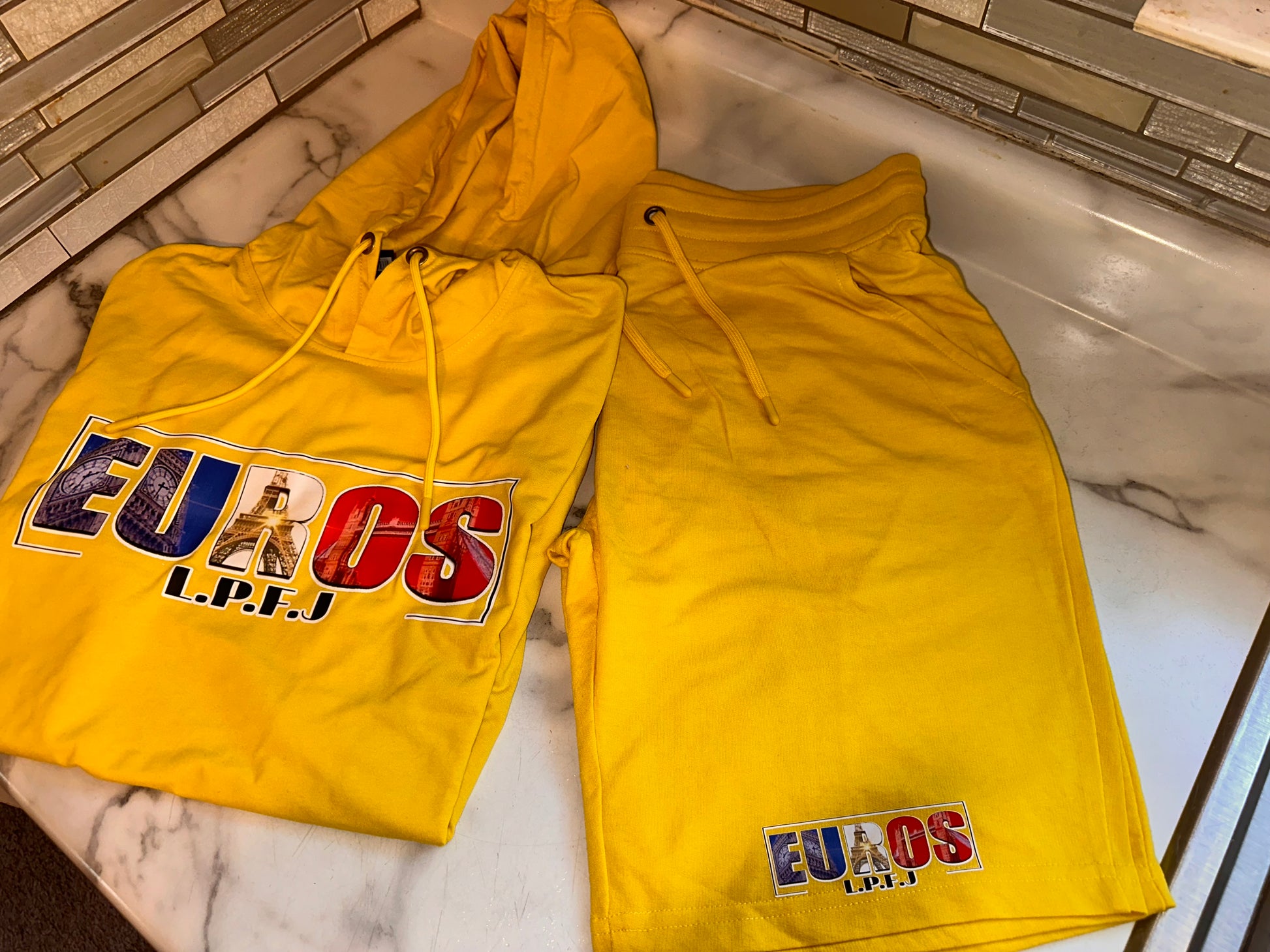 comfortable short set comes with matching Jersey hoodie This hoodie has nice side pockets with zippers
